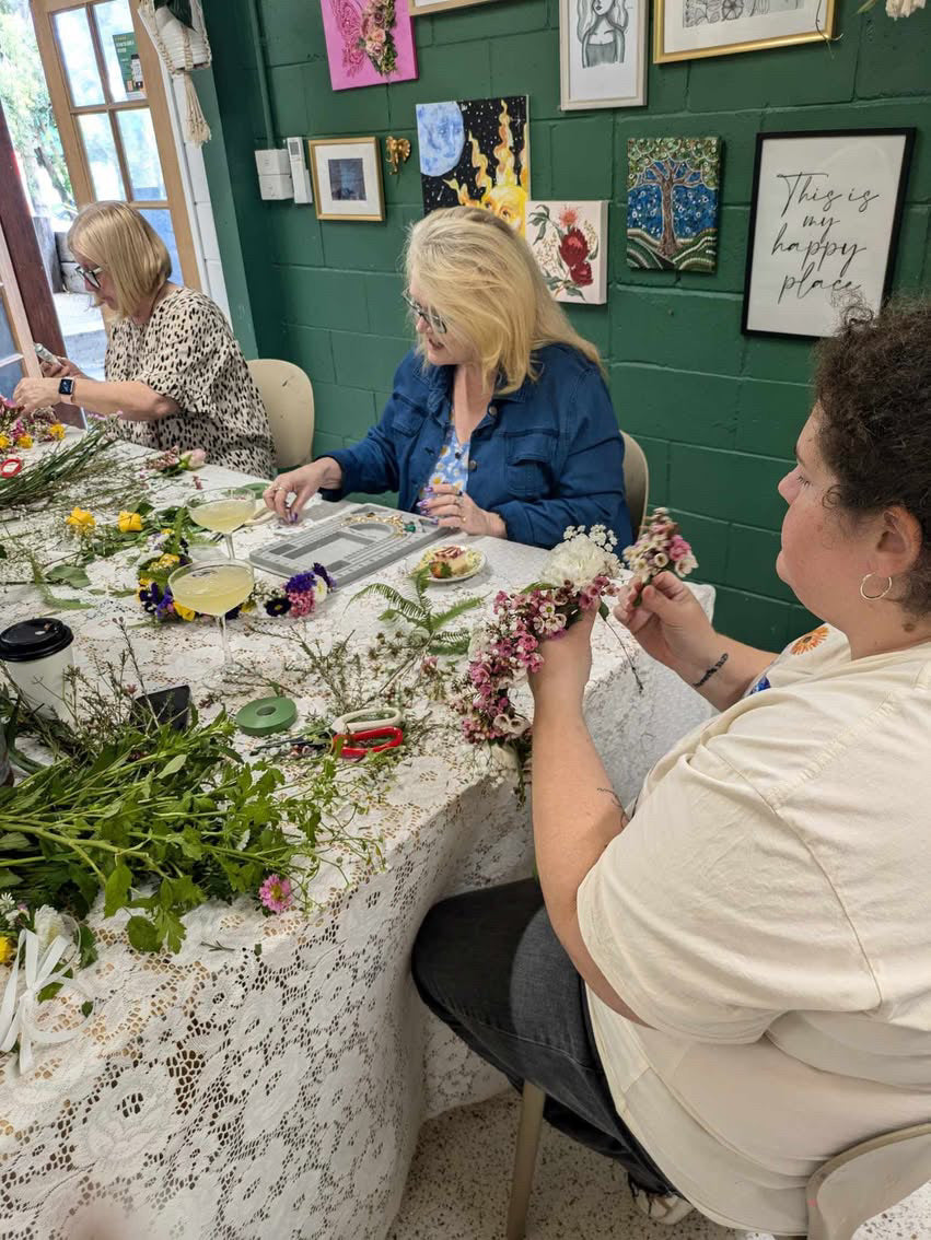 to Come bask in the beauty of blooms and brunch as we spend a delightful afternoon weaving our very own fresh flower crowns under the guidance of the lovely Monique, our local floral enchantress. 🌸